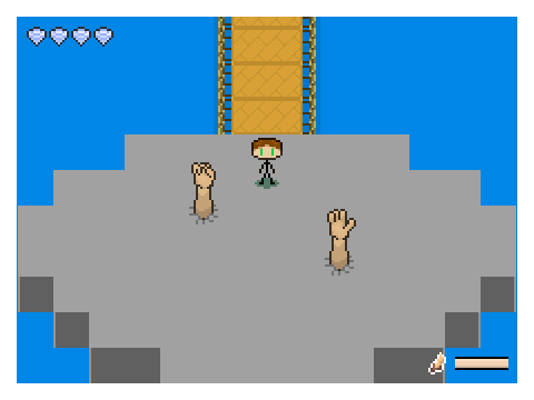 Stikman’s Legend features a small open-world environment featuring different items, enemies, and characters. Common enemies like Bootrap and Handoom return from Stikman Scratch, while new characters and weapons make their first appearance here. Different weapons and items each provide unique abilities that will aid you, the player, in guiding Stikman to freedom.